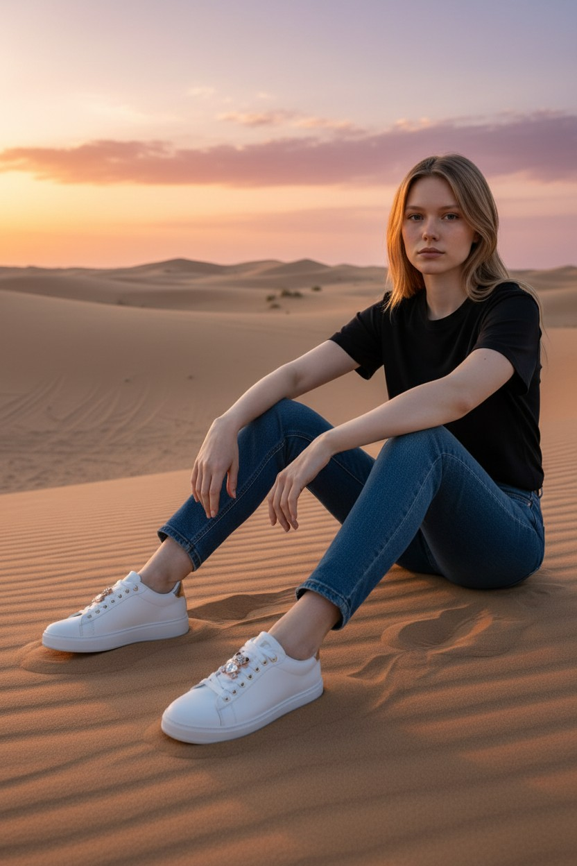 - Finitions Premium : Empiècement doré brillant à l'arrière du talon pour un contraste élégant et une allure "Sport-Chic".