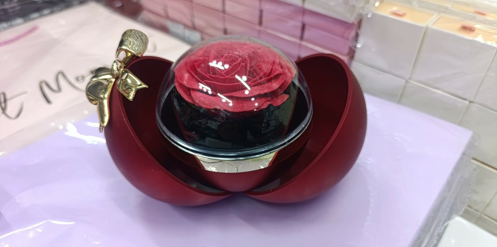 Rose éternelle, boîtes bijoux raffinées, oursons décoratifs…