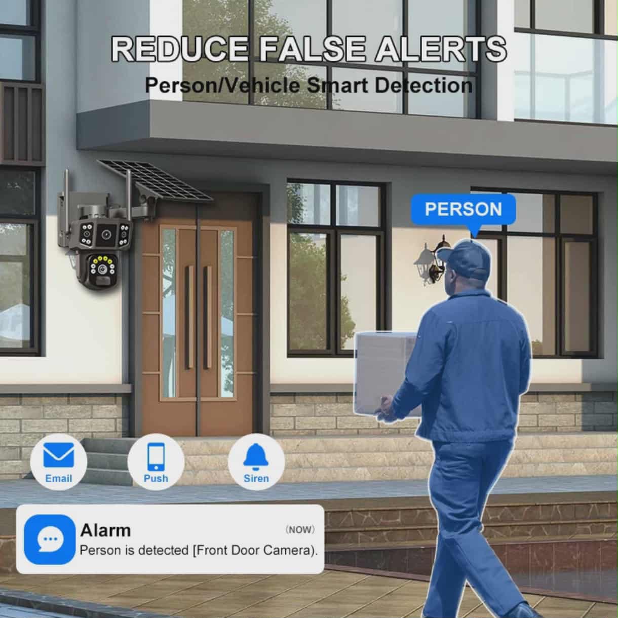 -Système d'alarme: Détection humaine AI + APP Push + Sirène d'alarme.