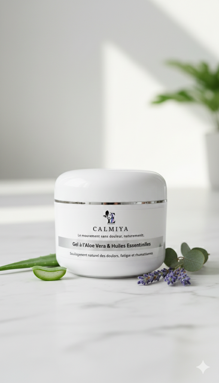 CALMIYA est un gel naturel à base de gel d’Aloe vera enrichi en huiles essentielles actives, spécialement formulé pour le soulagement rapide des douleurs musculaires, de la fatigue physique et des douleurs rhumatismales.