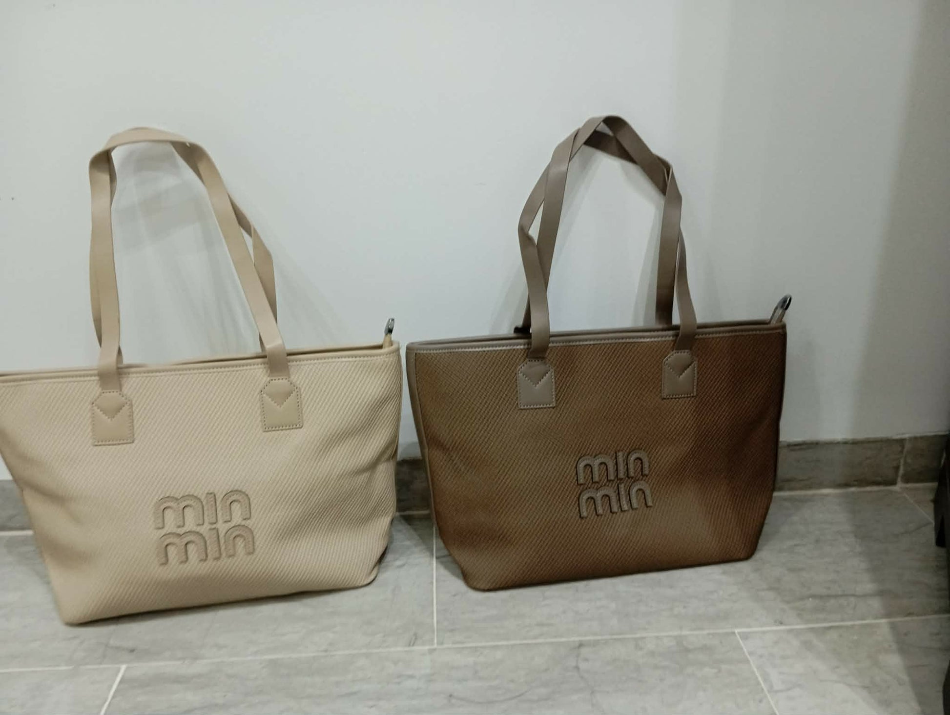 Ensemble Sac Cabas et Pochette Assortie en Similicuir Marron Texturé - Élégance et Fonctionnalité au Quotidien