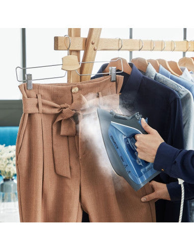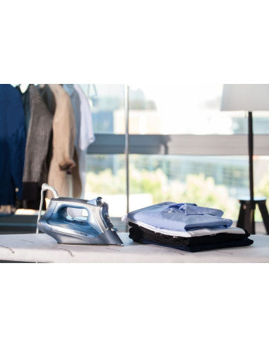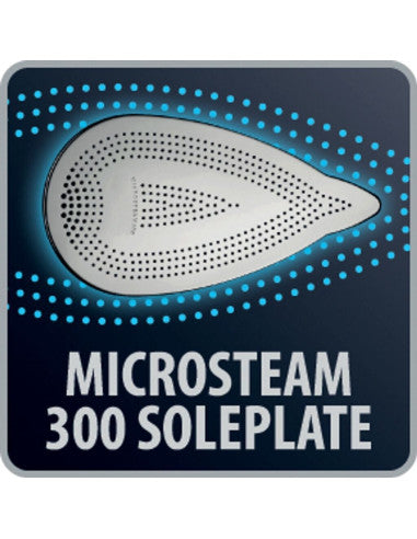 Sa semelle Microsteam 300 brevetée, en acier inoxydable haute qualité, garantit une excellente glisse et une diffusion homogène de la vapeur grâce à ses 300 micro-trous, pour un résultat impeccable sur tous les types de vêtements.