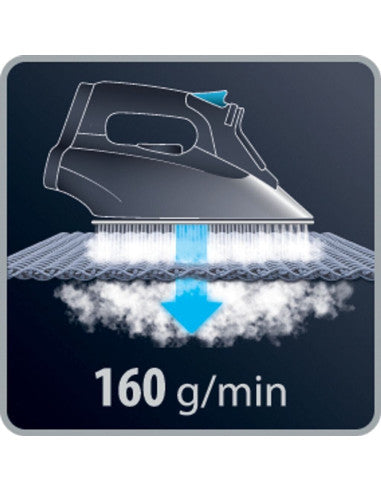 Découvrez le Rowenta Express Steam DW4320, le fer à repasser vapeur conçu pour offrir des performances puissantes, rapides et durables. Avec ses 2500 W de puissance, il chauffe rapidement et délivre un débit vapeur continu de 40 g/min pour un repassage fluide et homogène. Sa fonction pressing de 160 g/min vient à bout des plis tenaces et des tissus épais en un seul passage.