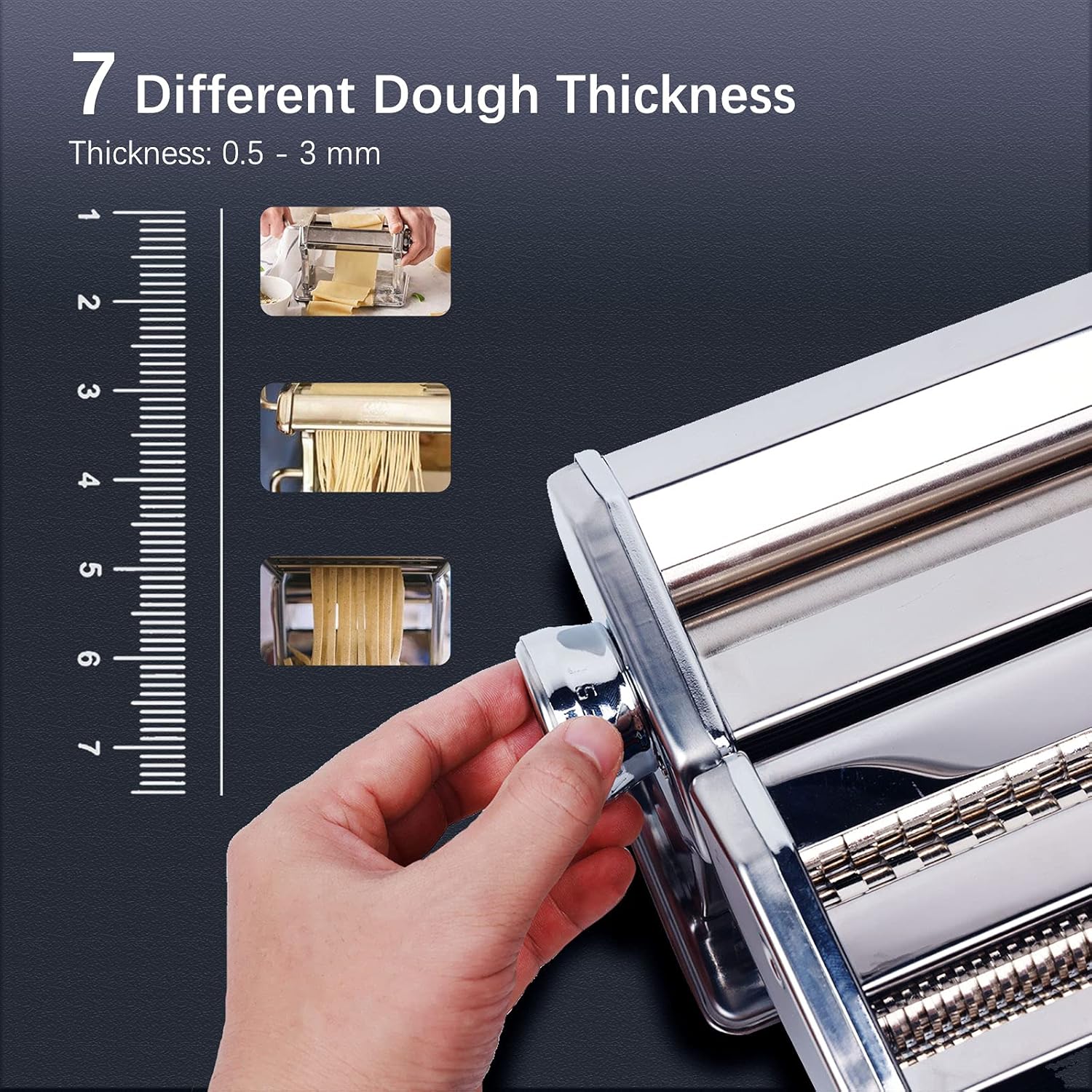 - DESIGN MAKELLES: Avec l'acier chromé et les rouleaux nickelés, cette machine à pâtes est non seulement attrayante et conviviale, mais aussi durable. La surface polie aura fière allure dans votre cuisine et le design robuste vous donnera de nombreuses années de bon goût.