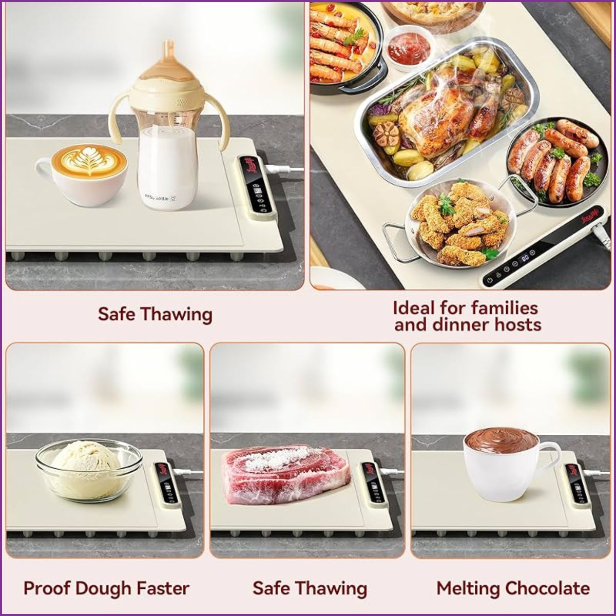 - Décongélation Rapide et Sûre : Accélérez la décongélation des viandes et poissons de manière uniforme et hygiénique.