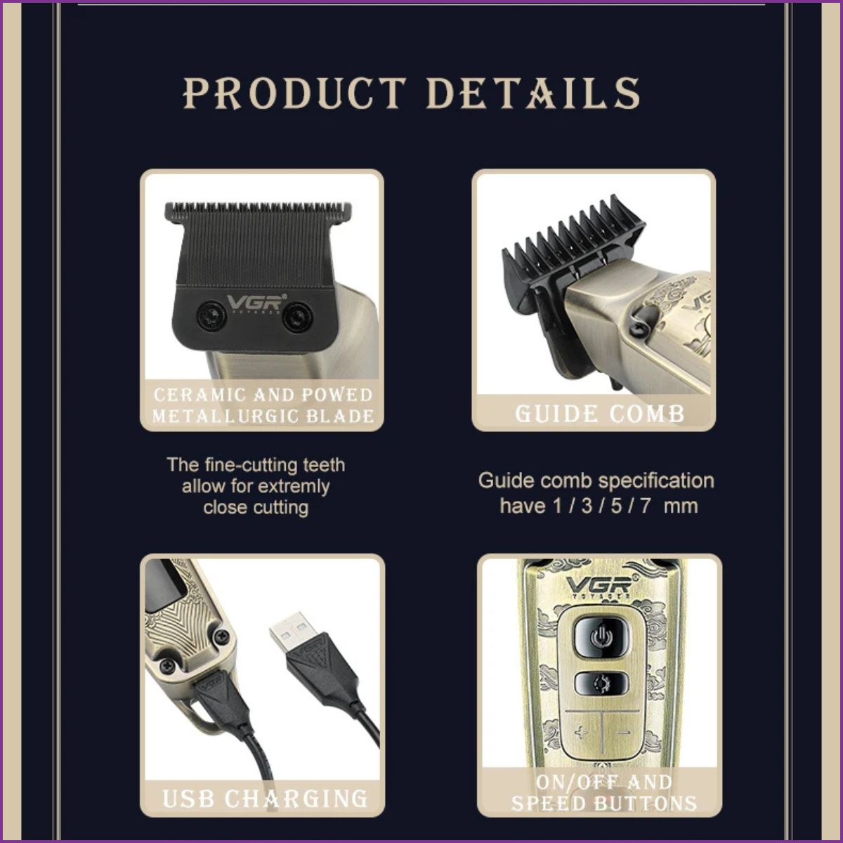 VGR V-005 : Tondeuse Professionnelle en Métal Or - Performance et Style Rétro